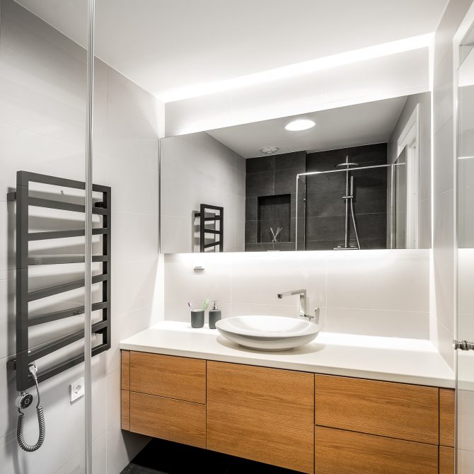 Įrengtas veidrodžio LED apšvietimas.