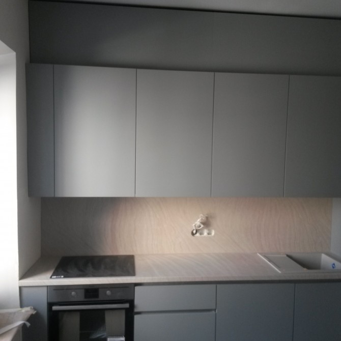 Spintelių fasadai ir korpuso matomos dalys MDF - dažytos pilkai, matiniais dažais.